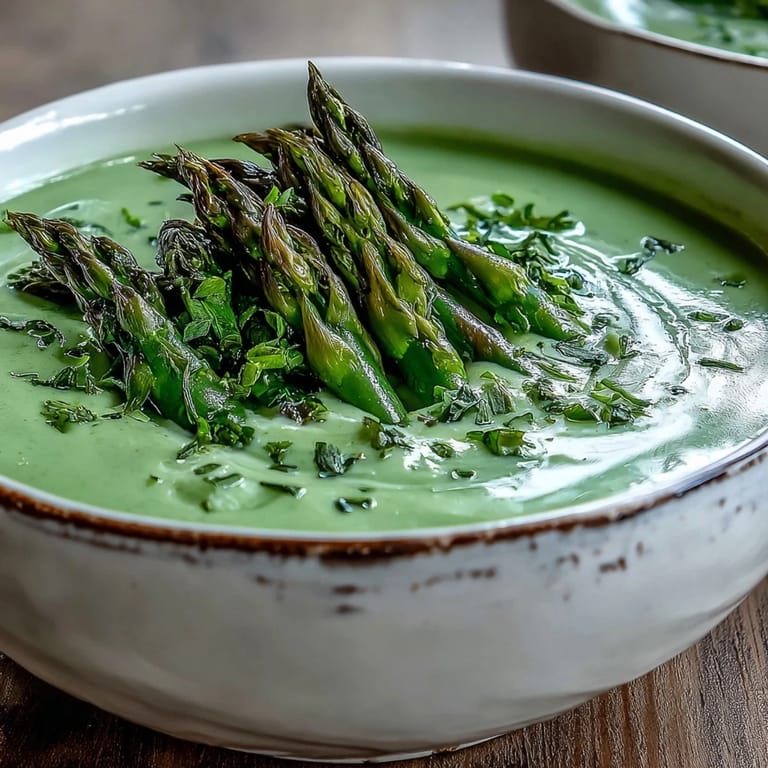 This soup is wonderful when served with a side of warm, crusty bread. For a perfect pairing, enjoy it with a glass of crisp white wine like Sauvignon Blanc, which beautifully complements the vegetal flavor of the asparagus.