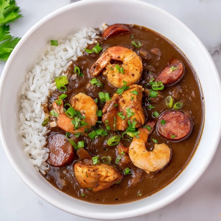 - Andouille sausage: This smoked pork sausage brings the essential Cajun flavor that makes gumbo authentic