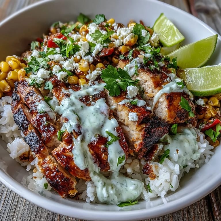 Save My neighbor Maria knocked on my door one Saturday with a warm bowl tucked under a tea towel, insisting I try what she'd just made. The smell hit me first: smoky, bright, with a hint of lime that made my mouth water before I even lifted the spoon. Inside was this riot of color and flavor, chicken and corn and creamy drizzles all piled over fluffy rice, and I stood there in my doorway eating like I hadn't seen food in days. She laughed and said it was just her version of the street corn bowls she grew up buying from carts in Guadalajara, nothing fancy. I begged her to show me how to make it, and by the next weekend, my kitchen smelled just like hers.