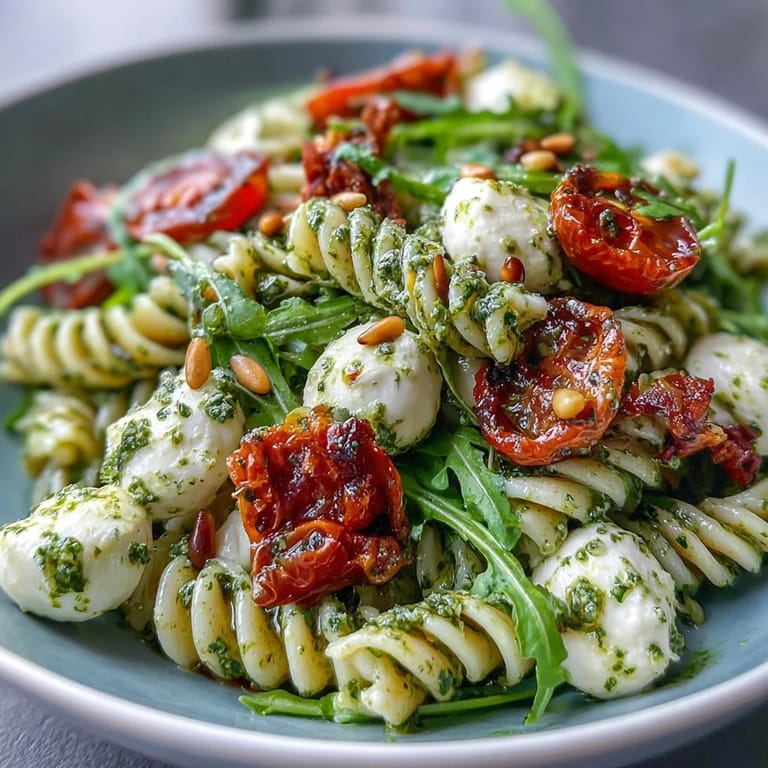 I remember serving this at a last-minute picnic, where someone commented the salad was 'almost too pretty to eat.' The pesto aroma mingled with the garden air, and everyone kept coming back for seconds, scooping up extra pine nuts. Even the simplest pasta gets transformed with a little care—especially when it's shared outdoors with good company.