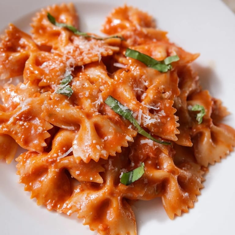 Save My neighbor once told me her kids refused plain red sauce, so she started sneaking in cream and calling it pink pasta magic. I tried it the next week with farfalle because the bowtie shape catches sauce like little pockets, and honestly, I never went back. The kitchen smelled like garlic and basil for hours. My husband walked in, saw the pot, and said it looked like something from a restaurant. It became our default Tuesday dinner without us even planning it.