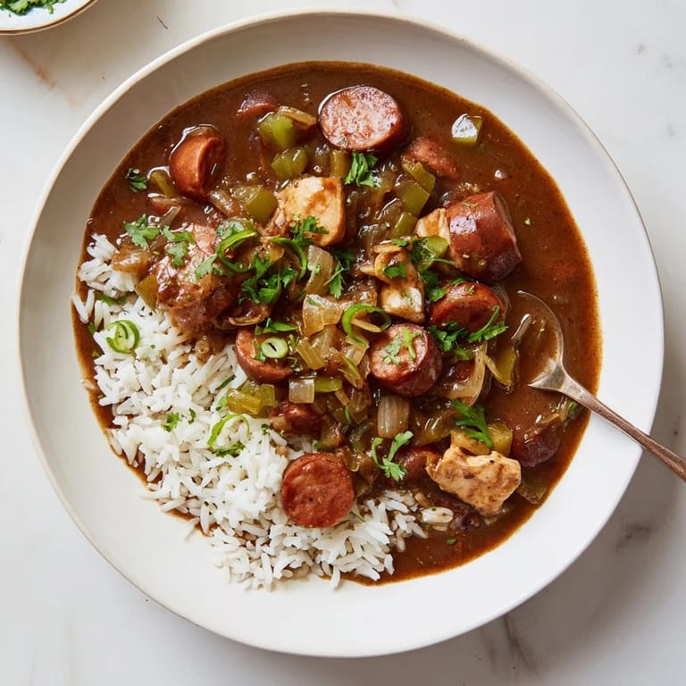 Save The first time I attempted gumbo, I stood over that roux for twenty-five minutes, arm aching, wondering if I'd ruined it. My roommate's grandmother had called from Baton Rouge to walk me through it, describing exactly what chocolate-brown should look like. When that nutty fragrance finally hit the kitchen, something clicked. Now every time I make it, I'm transported back to that tiny apartment kitchen.