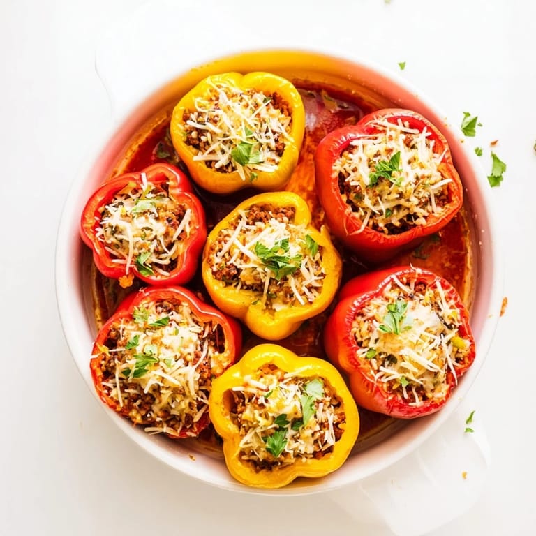 Save The first time I made stuffed peppers, I stood in front of the baking dish feeling strangely proud, like I'd accomplished something much harder than it actually was. My grandmother had never made them, so this wasn't some inherited recipe, but something I'd cobbled together from a magazine clipping and my own curiosity about what happens when you turn a vegetable into a serving vessel. That evening, watching the cheese bubble through the oven door, I realized how the simplest foods often become the ones we remember most vividly.